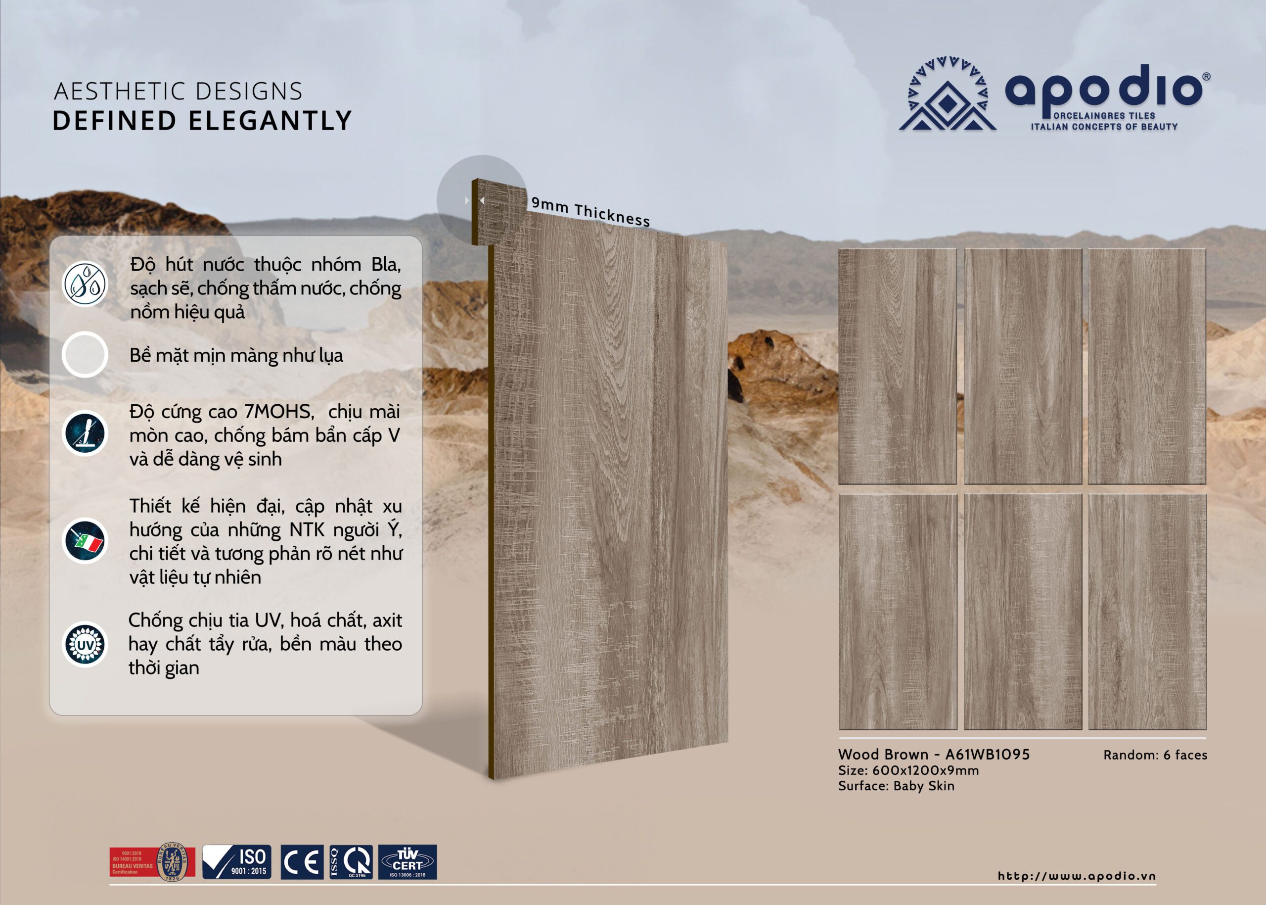 • Hệ vân: Vân gỗ – 6 face