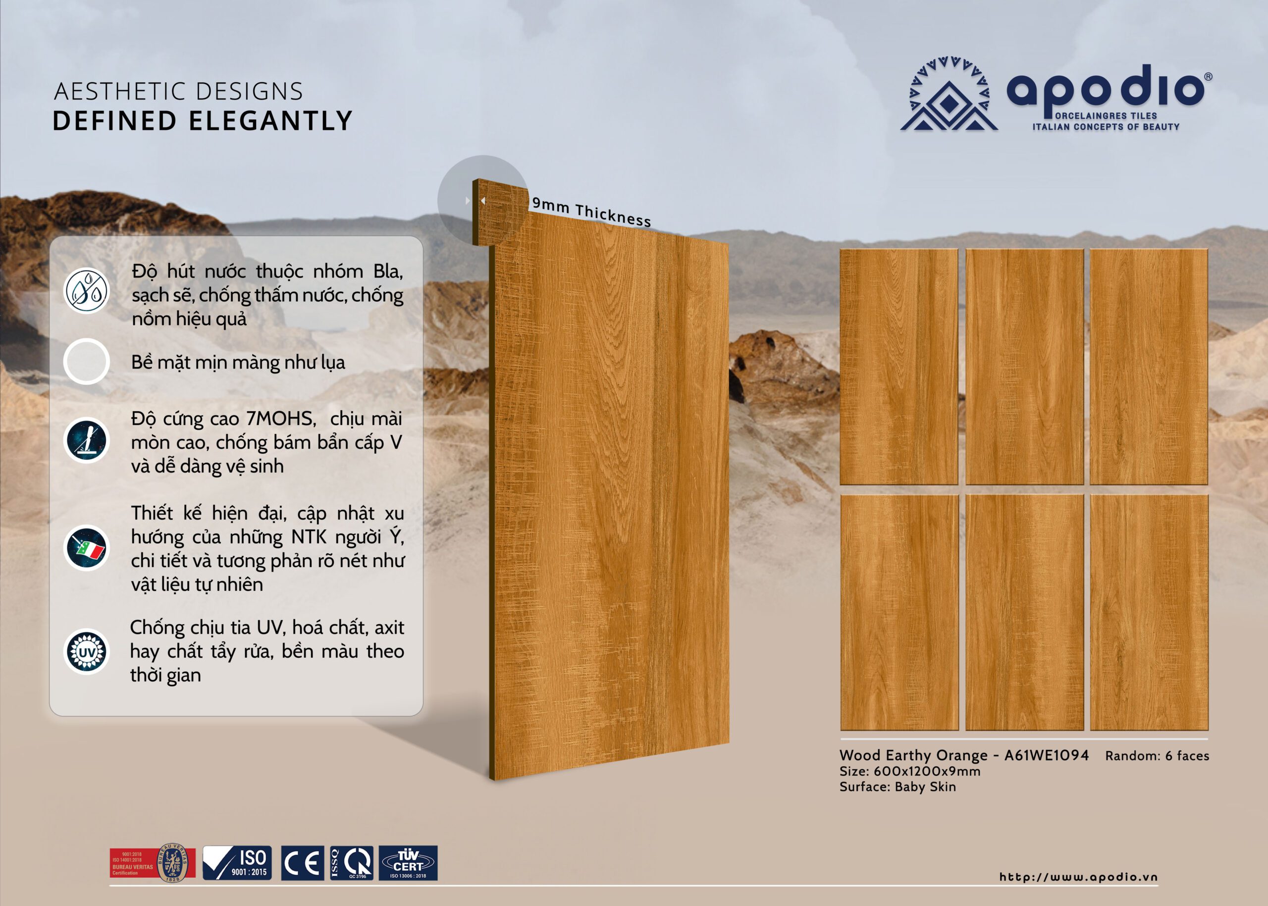 • Ứng dụng: Ốp tường + Lát nền